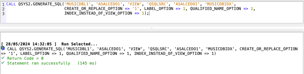 Statement ran successfully message was received. Let’s open the member in Runs SQL Scripts to see what was generated.